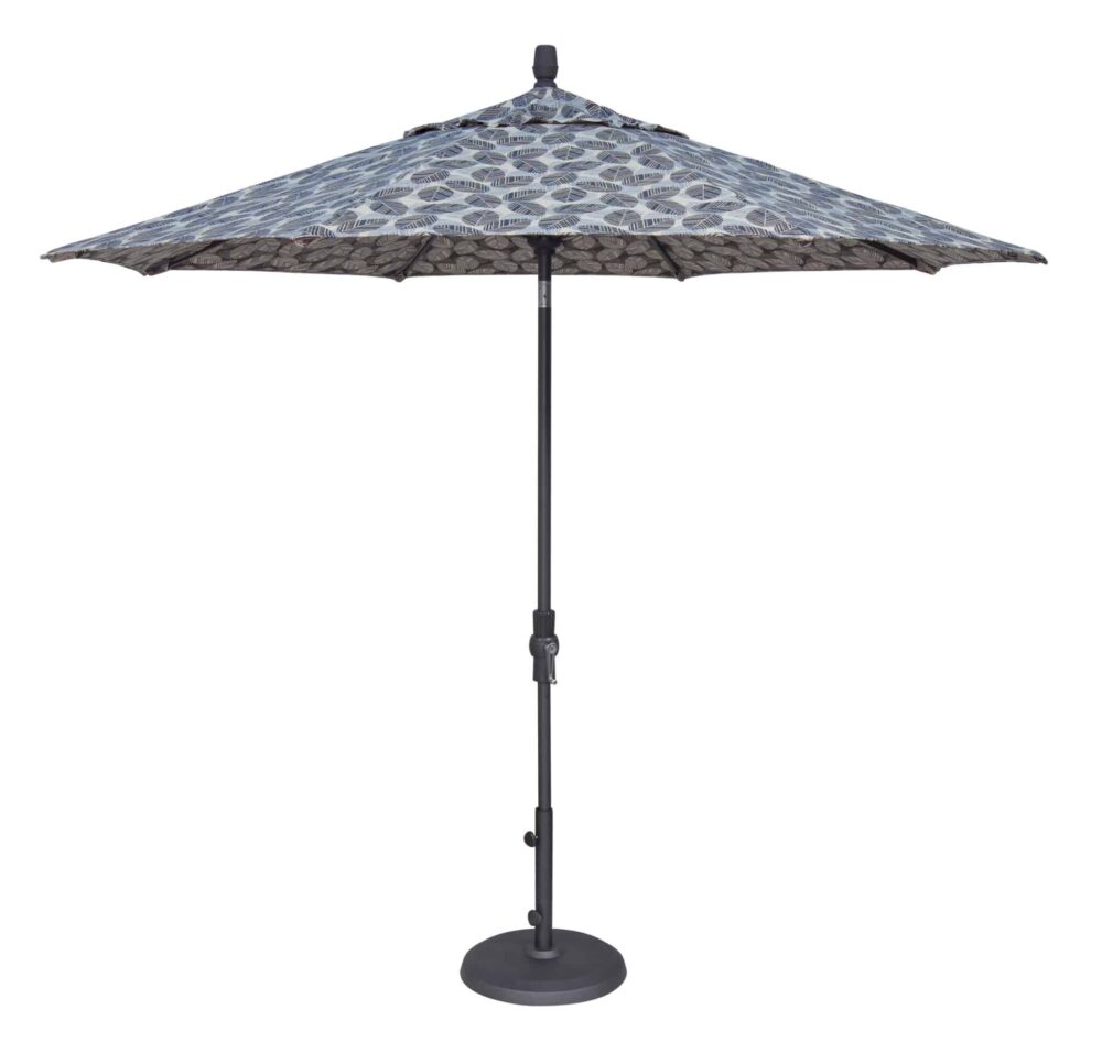 The easy-to-use Treasure Garden 9′ Aluminum Collar Tilt Umbrella features a rotational tilt “collar” that operates from just above the crank on the umbrella’s pole. This unique feature allows you to direct shade from one spot to any desired angle and direction. The 1.5″ diameter pole and frame is all aluminum and is powder-coated to prevent weathering.